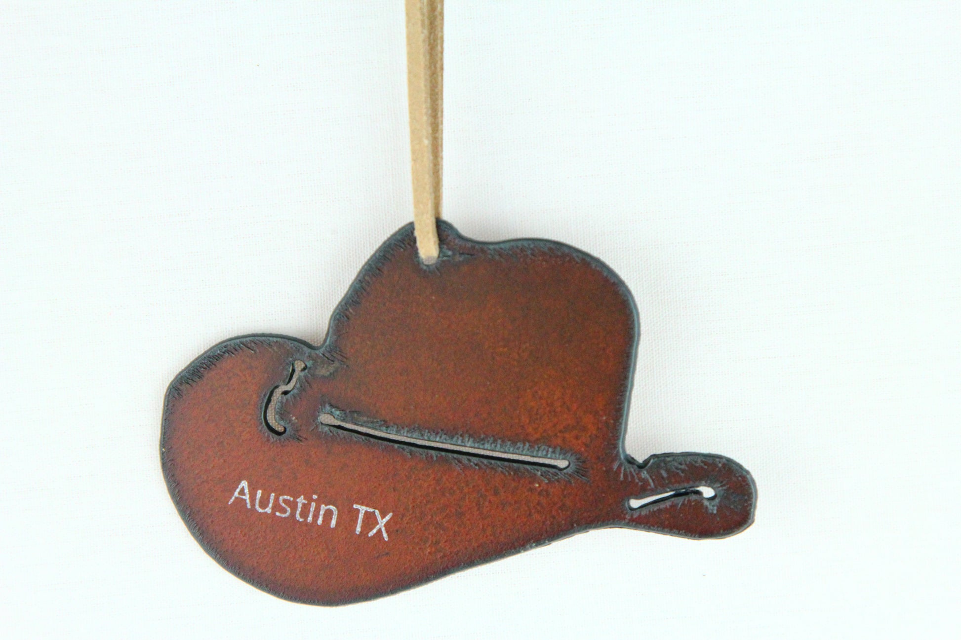 Bring a touch of rustic charm to your tree with our delightful western-themed laser-cut ornaments! Each one proudly features "Austin, TX," making them a wonderful keepsake to remember all the fun times you had here. Happy decorating!